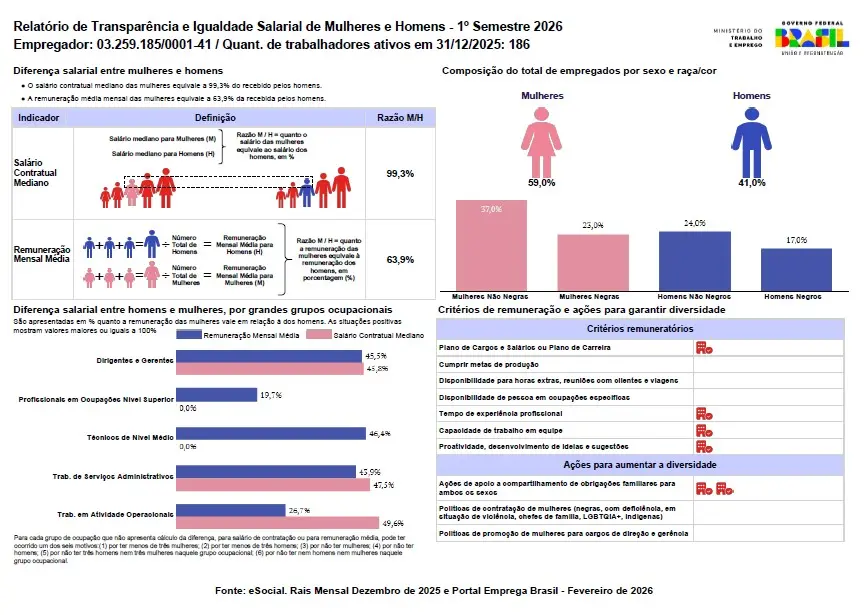 Análise do Relatório de Transparência e Igualdade Salarial de Mulheres e Homens 1o Semestre 2026